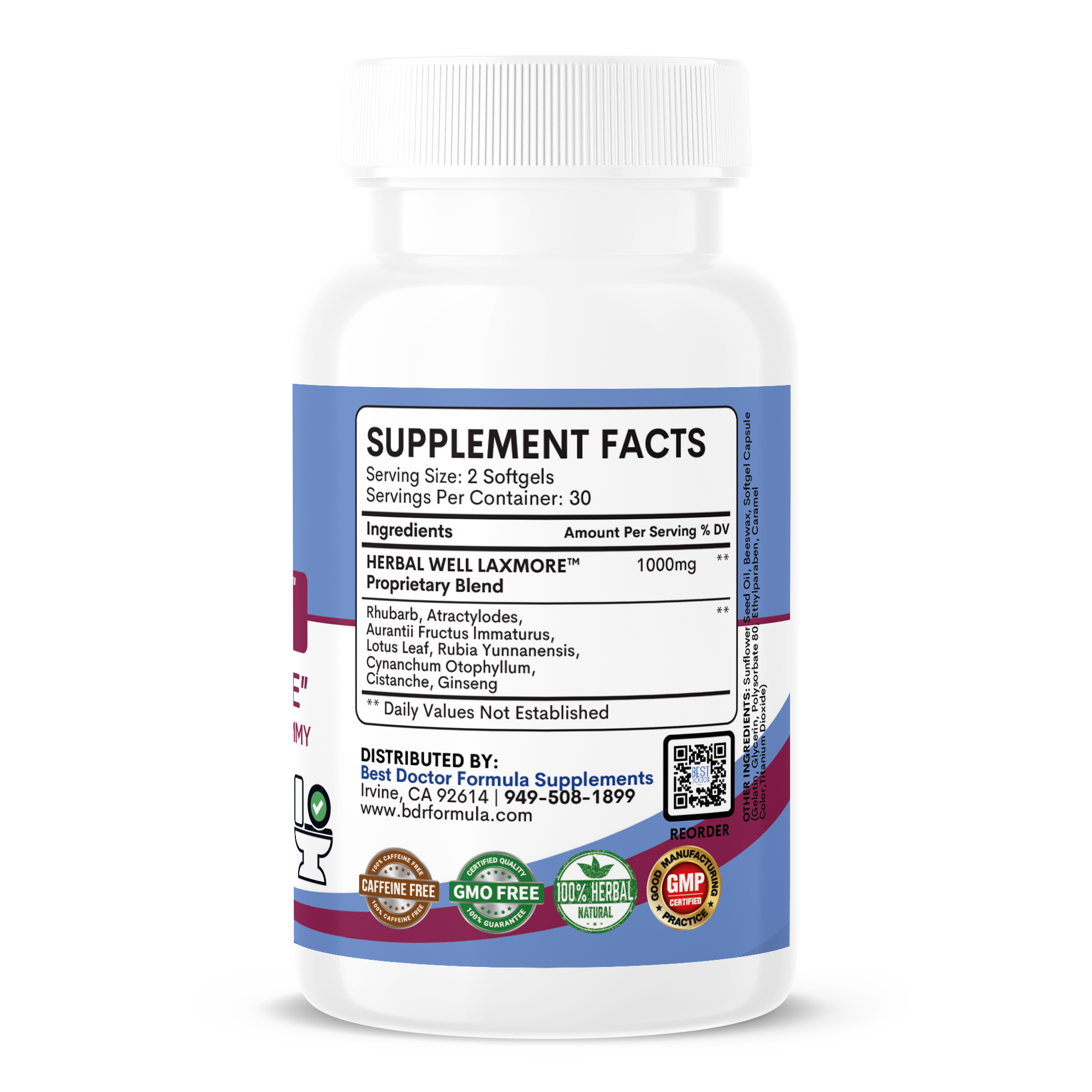 Using natural ingredients like Rhubarb and Lotus Leaf, LAXMORE™ provides effective relief without harsh chemicals or irritation.